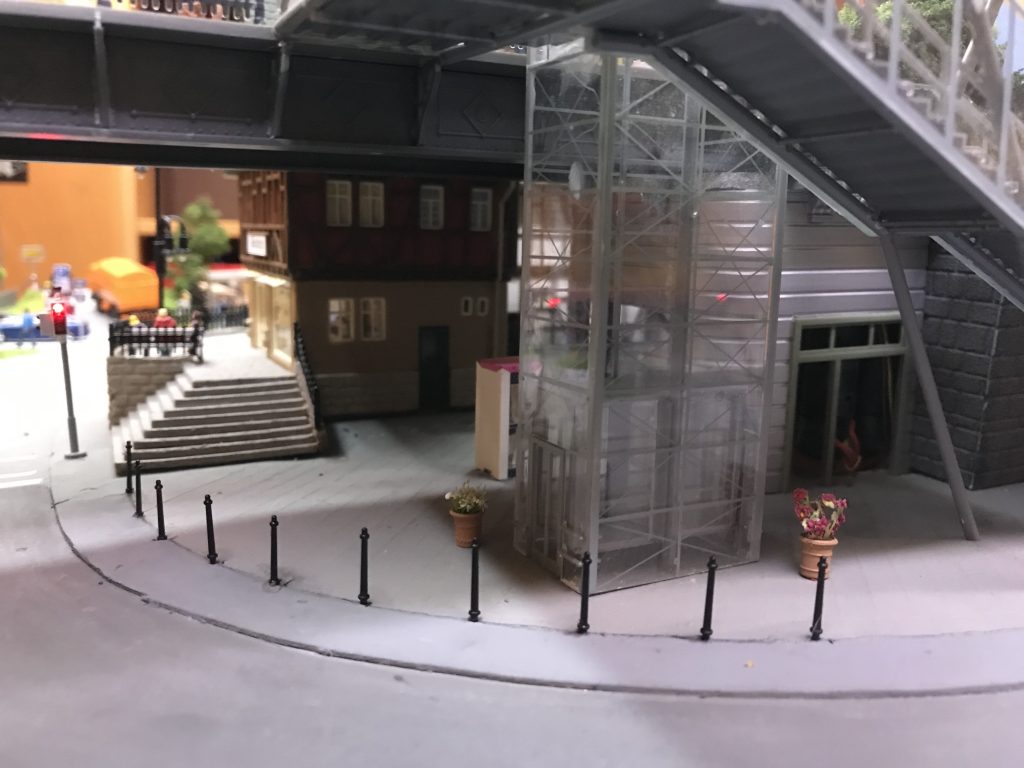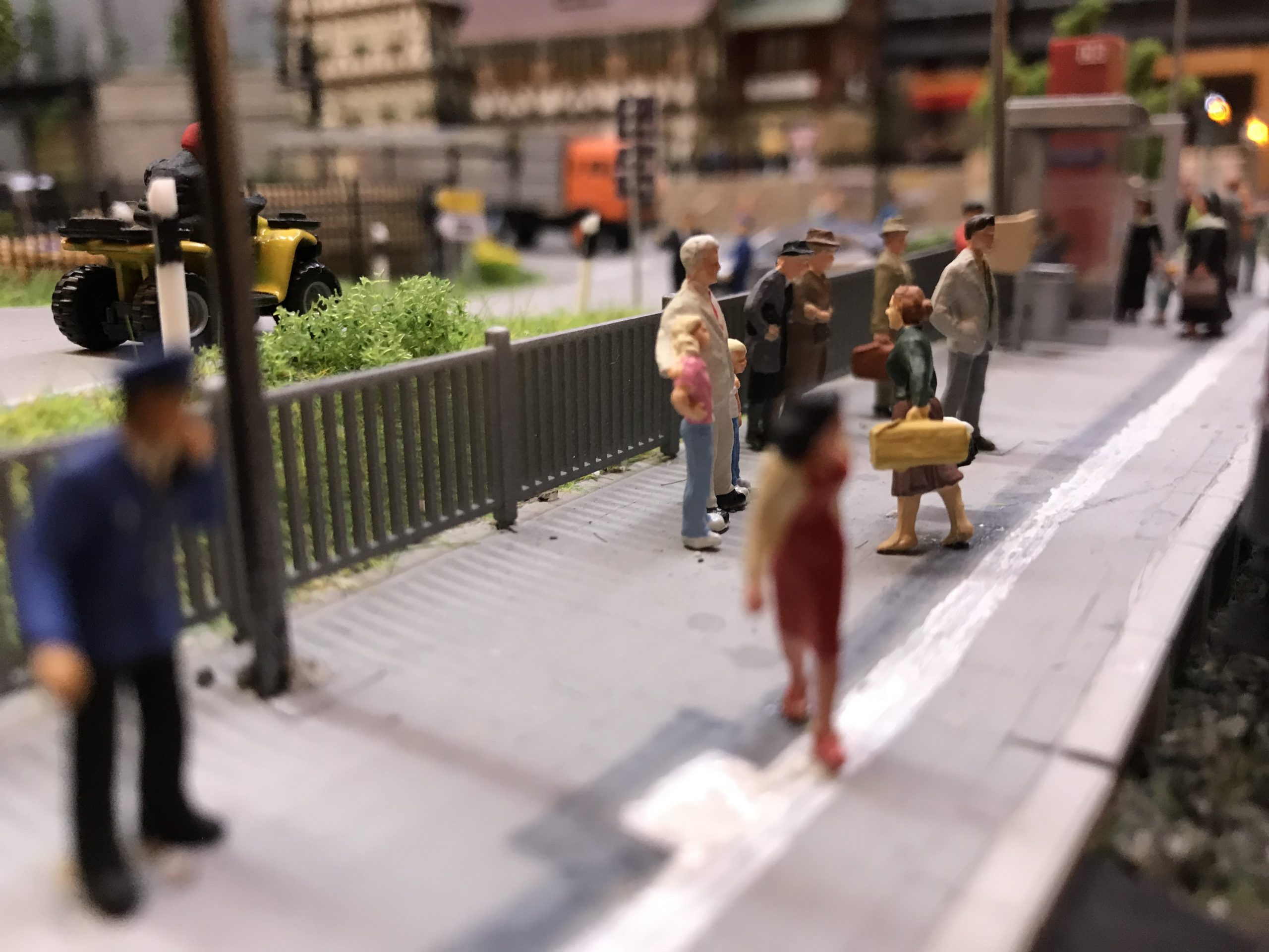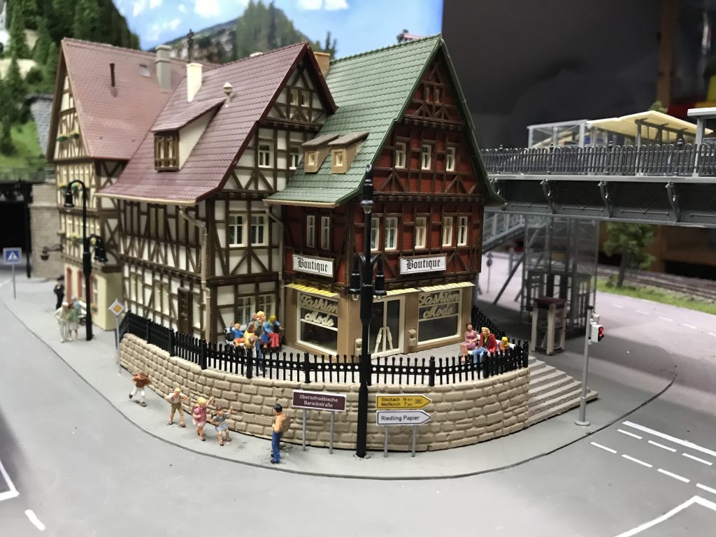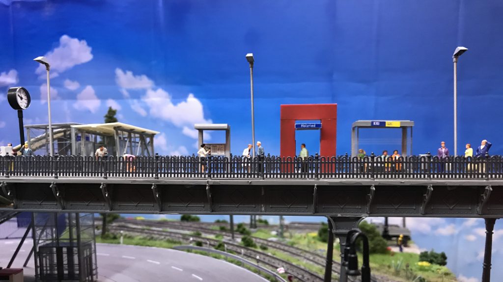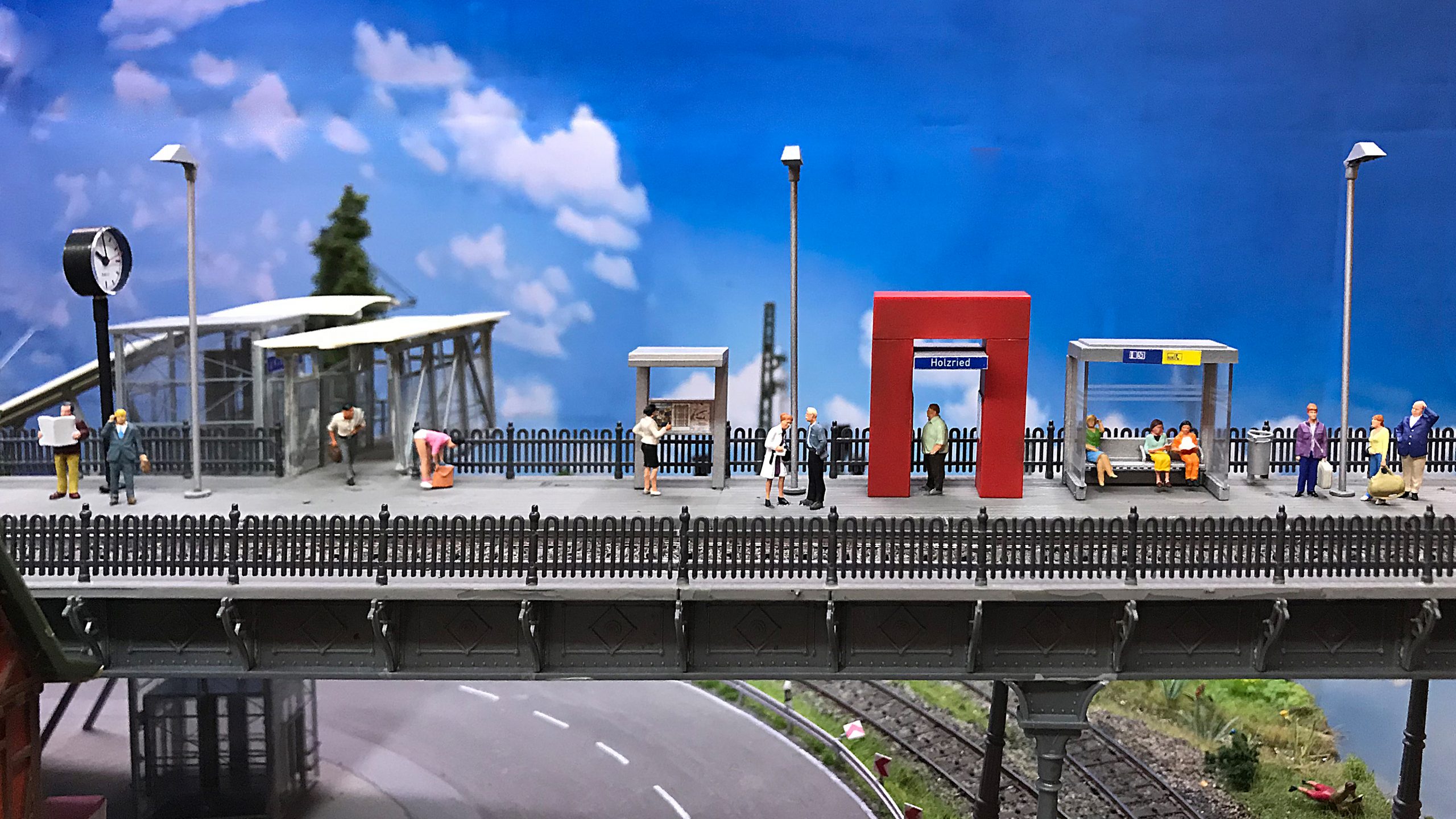 Themen sind auf diesem überschaubaren Raum von 1 x 1,5 m Berglandschaft mit Kapelle, Sägewerk, Bahnsteig, Gleisbaustelle, Papierfabrik, und einiges mehr.