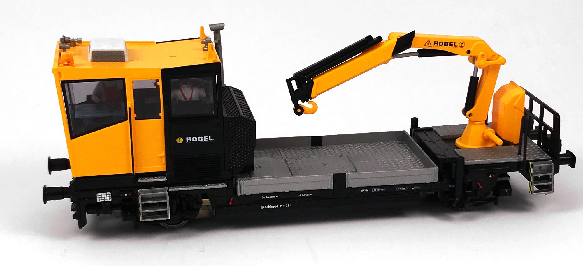 Modell: Mit Digital-Decoder mfx+ und umfangreichen Geräuschfunktionen. Geregelter Hochleistungsantrieb. Wartungsfreier Motor in kompakter Bauform. 2 Achsen angetrieben. Angesetzte Griffstangen am Führerhaus. Fahrtrichtungsabhängig wechselndes Dreilicht-Spitzensignal und zwei rote Schlusslichter konventionell in Betrieb, digital schaltbar. Spitzensignal an Lokseite 2 und 1 jeweils digital separat abschaltbar. Doppel-A-Licht-Funktion. Beleuchtung mit wartungsfreien warmweißen und roten Leuchtdioden (LED). Führerstand mit Einrichtung und schaltbarer Innenbeleuchtung. Ladekran motorisch schwenkbar, digital steuerbar.